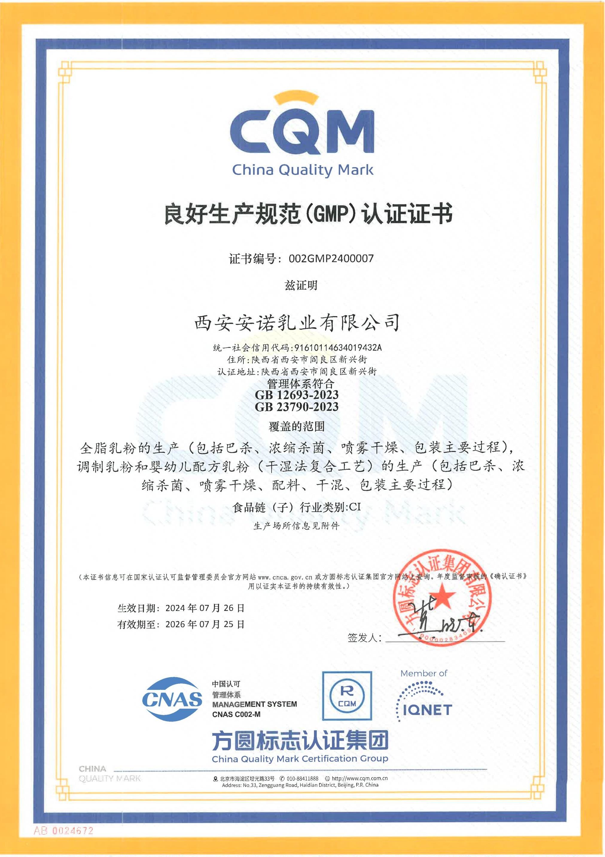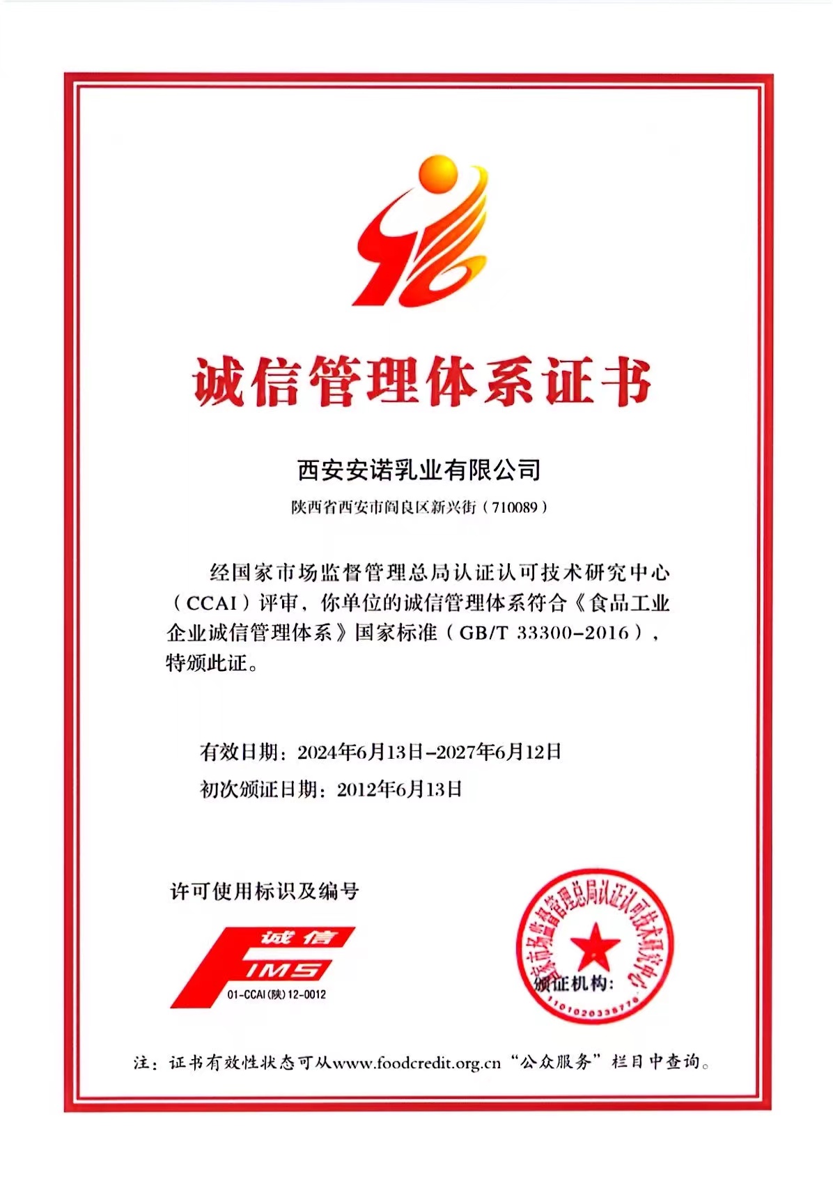 西安安諾乳業(yè)有限公司始建于1973年,迄今已有五十多年的發(fā)展歷史,安諾對于產(chǎn)品質(zhì)量有嚴(yán)控體系網(wǎng),確保每一批鮮奶、每一批原輔料、每一個(gè)過程、每一款產(chǎn)品,均按標(biāo)準(zhǔn)規(guī)范持之以恒,確保過程嚴(yán)謹(jǐn)有序,保證產(chǎn)品質(zhì)量。